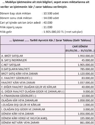 Mobilya işletmesinin brüt kâr marjı aşağıdakilerden hangisidir?