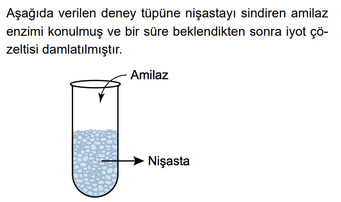 (İyot çözeltisi nişasta ile mavi-mor renk verir.)