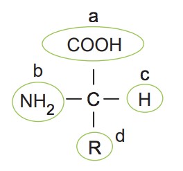 Amino asitin harflerle belirtilen bölümler ile ilgili verilenlerden hangisi yanlıştır?
