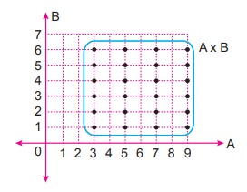 Yukarıdaki koordinat düzleminde A x B kümesinin elemanları gösterilmiştir.