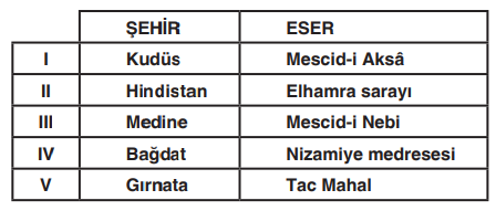 Bu tabloda yapılan yer-eser eşleştirmelerinden hangileri doğru olarak verilmiştir?