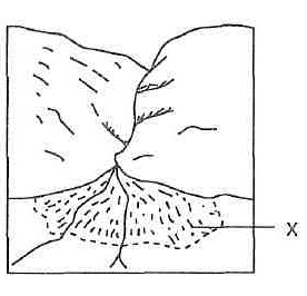 Yukarıda, X ile gösterilen yüzey şeklinin oluşmasında aşağıdakilerden hangisi etkilidir?