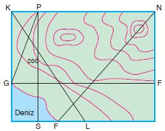 Yukarıdaki haritada belirtilen hangi noktalar arasından çıkarılacak profilde yükselti farkı en fazladır?