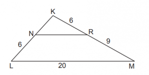 Şekildeki KLM üçgeninde [NR] // [LM], |KR| = |NL| = 6 cm |RM| = 9 cm ve |ML| = 20 cm'dir.