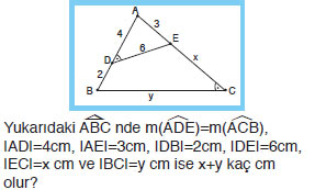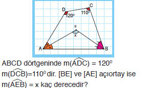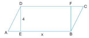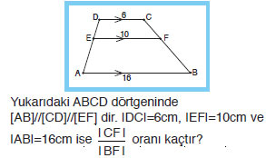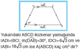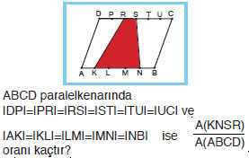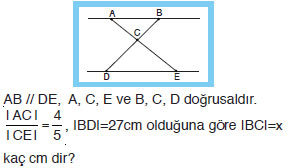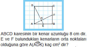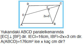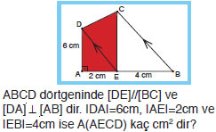 A(ABCD) = 56 cm2, A() = 2 cm2 ve |DE| = 4 cm olduğuna göre |EB| = x kaç cm dir?