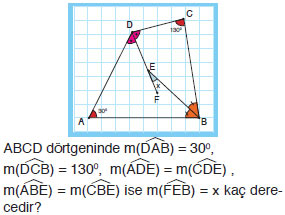 Üstteki şekilde ABCD bir kare ve EDC bir eşkenar üçgendir. Buna göre m() = x kaç derecedir?