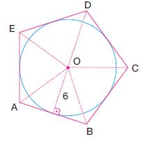 Şekilde verilen ABCDE düzgün beşgeninin bir kenarının uzunluğu 8 birim, iç teğet çemberinin yarıçapının uzunluğu 6 birim olduğuna göre bu düzgün beşgensel bölgenin alanı kaç birim karedir?