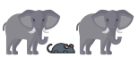 The mouse is ........... the elephants.