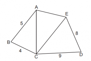 Şekildeki ABC ve CED üçgenlerinde |CD| = 9 cm, |ED| = 8 cm, |AB| = 5 cm ve |BC| = 4 cm dir.