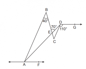 m(AéBC) = 40°, m(BéExD) = 70° ve m(CéDG) = 110° olduğuna göre m(DéAF) kaç derecedir?