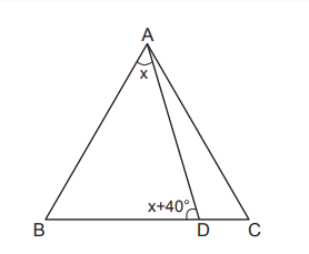 Şekildeki ABC eşkenar üçgeninde m(BéAD) = x ve m(BéDA) = x + 40° dir.