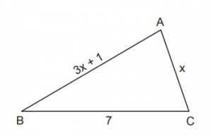 Şekildeki ABC üçgeninde |AB| = (3x + 1) cm, |AC| = x cm ve |BC| = 7 cm'dir.