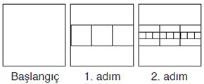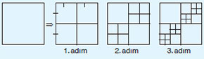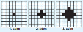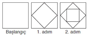 Yukarıda başlangıç ve ilk iki adımı verilen fraktalın 3. adımındaki kare sayısı kaçtır?