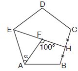 Üstteki ABCDE düzgün beşgeninde E, F, H doğrusal, |BH| = |HC|, m() = 100° isem() = α kaç derecedir?