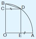 O merkezli çeyrek çemberde OCDE bir dikdörtgendir. |CD| = |AE| ise m() kaç derecedir?