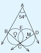 Şekildeki O ve M merkezli çemberler C ve E noktalarında kesişmektedir. [AB ve [DC O merkezli çembere; [AD ve [BC M merkezli çembere teğettirler.