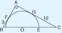 O merkezli çember ABC dik üçgenine F ve G noktalarında teğettir. |GC| = 12 cm |BF| = 3 cm ise |OE| kaç cm dir?