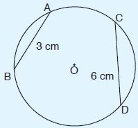 O merkezli çemberde, |AB| = 3 cm |CD| = 6 cm m() + m() = 120° ise çemberin yarıçapı kaç cm dir?