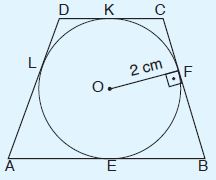 ABCD yamuğu teğetler dörtgeni, O çemberin merkezi, [OF] ⊥ [BC], |OF| = 2 cm dir. Ç(ABCD) = 20 cm ise A(ABCD) kaç cm² dir?
