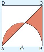 ABCD karesinin içinde O merkezli yarım daire çizilmiştir. [AC] köşegen ve taralı alanların toplamı 36 cm² ise karenin bir kenarı kaç cm dir?