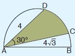 [AB] çaplı çemberde m() = 30°, |AD| = 4 cm, |AC| = 4√3 cm ise taralı alan kaç cm² dir?