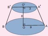 Üstte tabanlarının yarıçapları r1=3 br, r2=9 br ve yüksekliği h=8 br olan kesik dik dairesel koni verilmiştir.