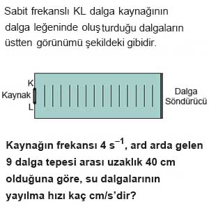 Dalgaların periyodu 1/4 olduğuna göre dalgaların ilerleme hızı kaç cm/s’dir?