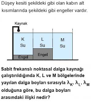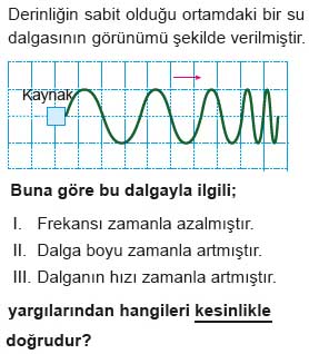 I. Suyun derinliği azalmıştır.II. Dalgaların frekansı artmıştır.III. Kaynak dalgalarla aynı yönde hareket etmiştir.
