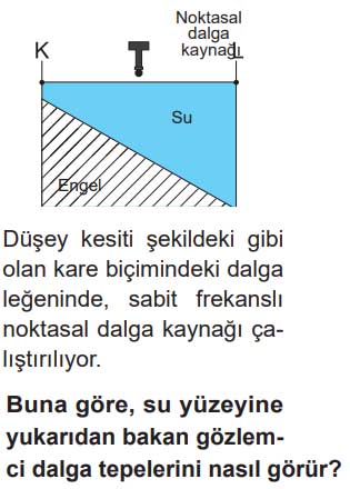 Bir dalga leğeninde oluşturulan dalgaların kaynaktan uzaklaştıkça dalga boyları azalıyor.