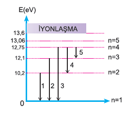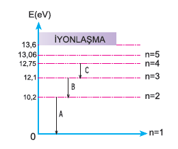 Hidrojen atomuna ait enerji düzeyleri şekilde verilmiştir.