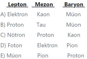 Aşağıdaki atom altı parçacıklar için verilen örneklerden hangisi doğrudur?