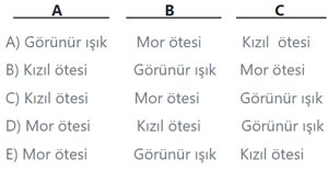 A, B, C ışımaları için aşağıdakilerden hangisi doğrudur?