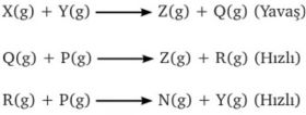 Yukarıda bir tepkimenin basamakları verilmiştir.