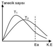 Yukarıda bir tepkimenin tanecik sayısı-kinetik enerji dağılımı grafiği verilmiştir.