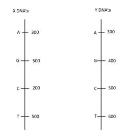 En az deoksiriboz şekeri X DNA molekülünde bulunur.En fazla fosfat Y DNA molekülünde bulunur.DNA molekül parçalarının ısıya dayanıklılığına göre doğru sıralanışı Y< X şeklindedir.